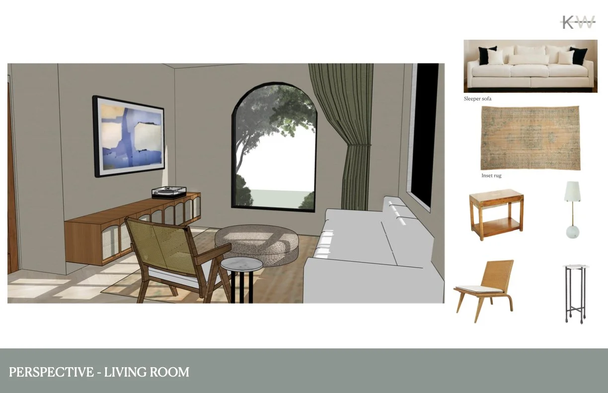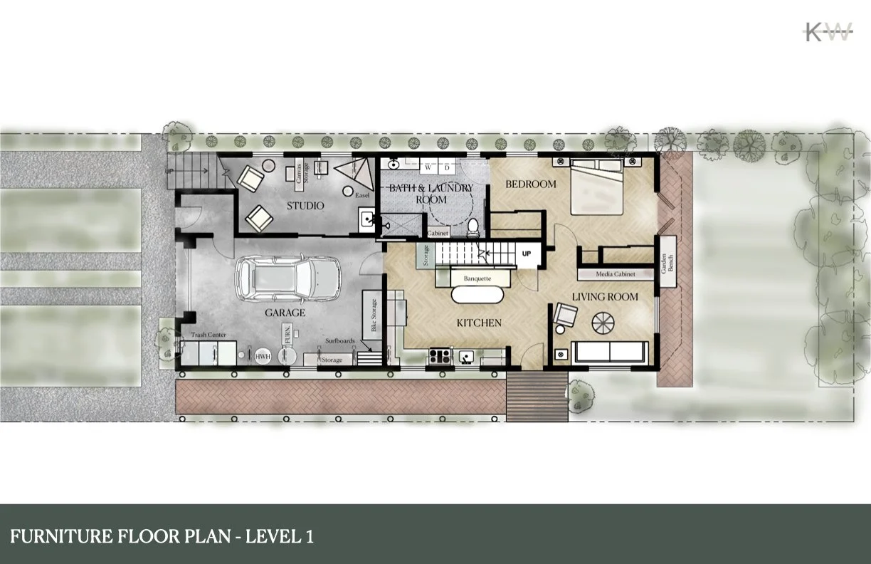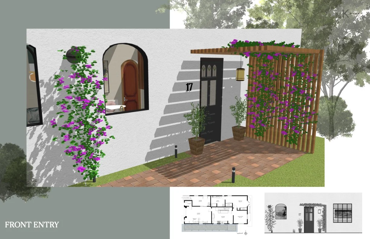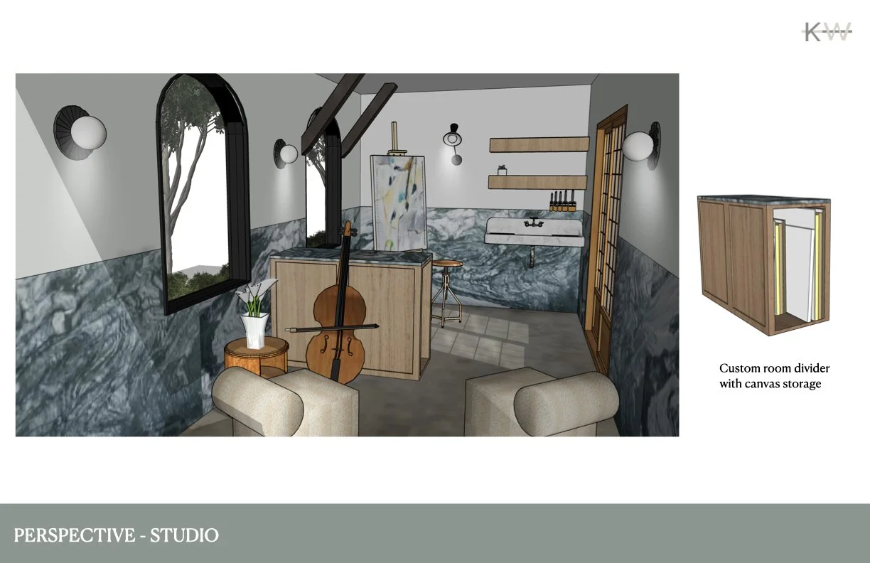 Retirees Joan and Harold are looking to convert the ground level of their San Francisco home into a proper one bedroom apartment, where they can age in place. Harold loves to paint and grow bougainvillea, while Joan still teaches cello lessons. They are an active couple with a lot of hobbies and an appreciation for fine wine. Storage for their record collection, bikes, surfboards, and display space for Joan’s pottery collection is desired. Their love for the Bay Area and the California coast must be felt within the home. An appreciation for the old and the new.